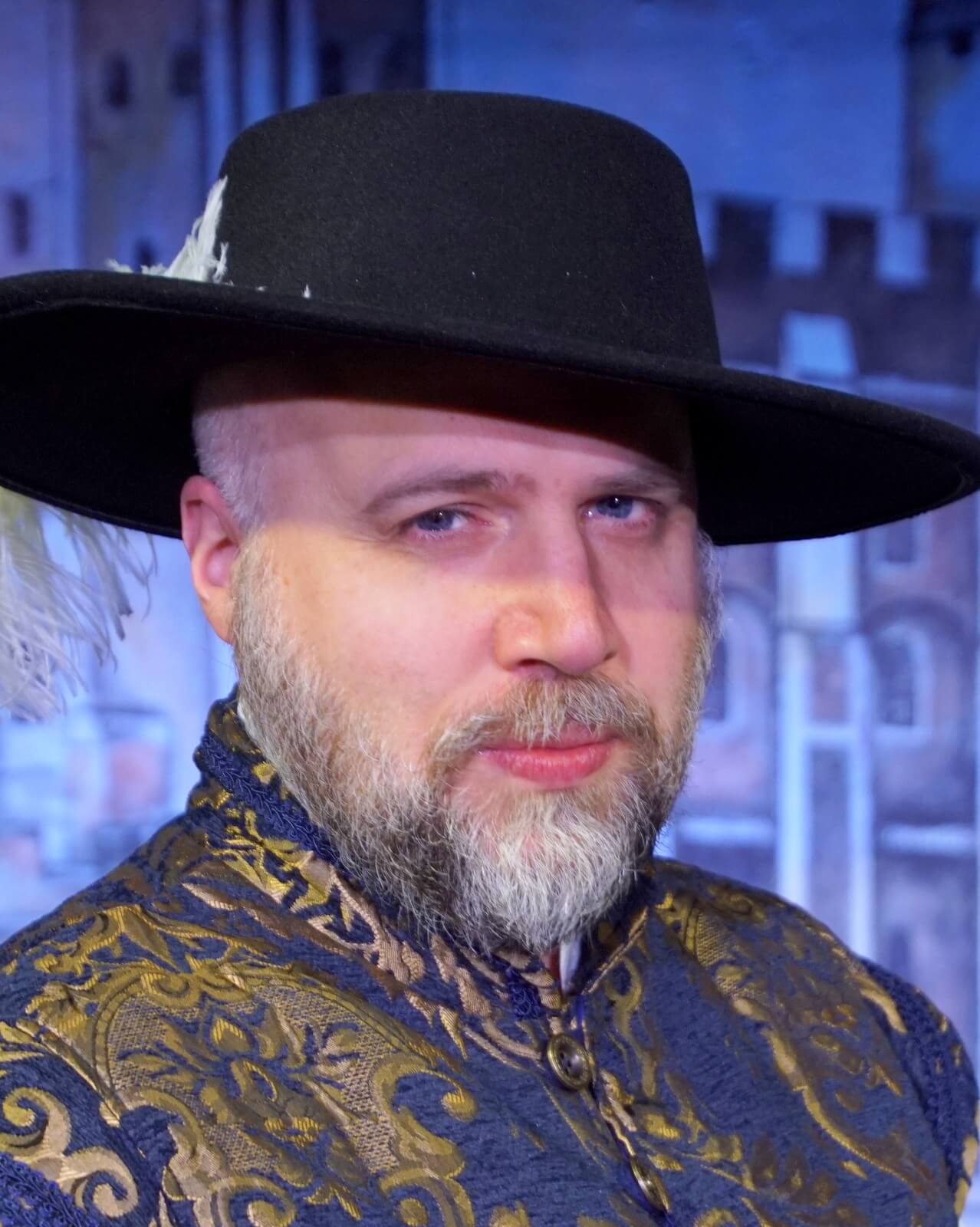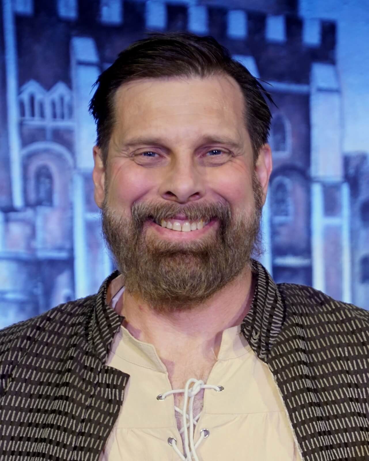 When not on stage, Mary quilts, gardens, raises butterflies, reads, travels, hikes, and plays with her two beautiful grandchildren. She is a retired preschool Naturalist teacher, and will still be found at Tamarack Nature Center volunteering for Bird Banding, Maple Syrup programs, or sewing scarves with preschoolers. This is Mary’s third time performing The Yeomen of the Guard. The resilience and support this cast and crew has for each other is amazin … but the GSVLOC excels at that, as well as bringing our audience a beautiful show! I close with a quote: “So life’s year begins and closes; Days though shortening still can shine; What though youth gave love and roses; Age still leaves us friends and wine.” – Sir Thomas More, February 07, 1477 – July 06, 1535.